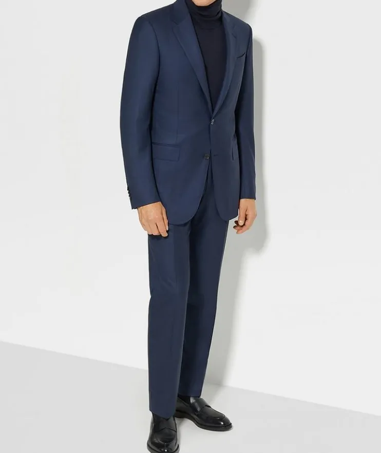 - This suit has been crafted in a regular fit, designed to sit naturally against the body.