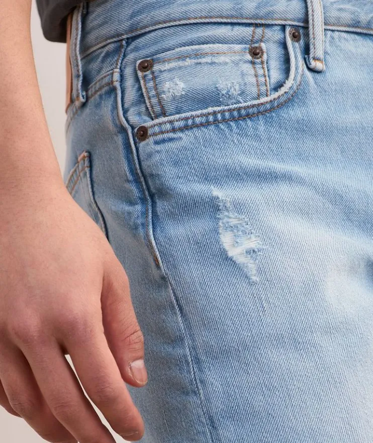 - Made for your streetwear edit from pure cotton denim, these jeans are faded to create an authentically worn-in, vintage feel. Cut for a regular fit with a mid-rise, straight leg and regular length, this style is subtly distressed for a unique urban look.
