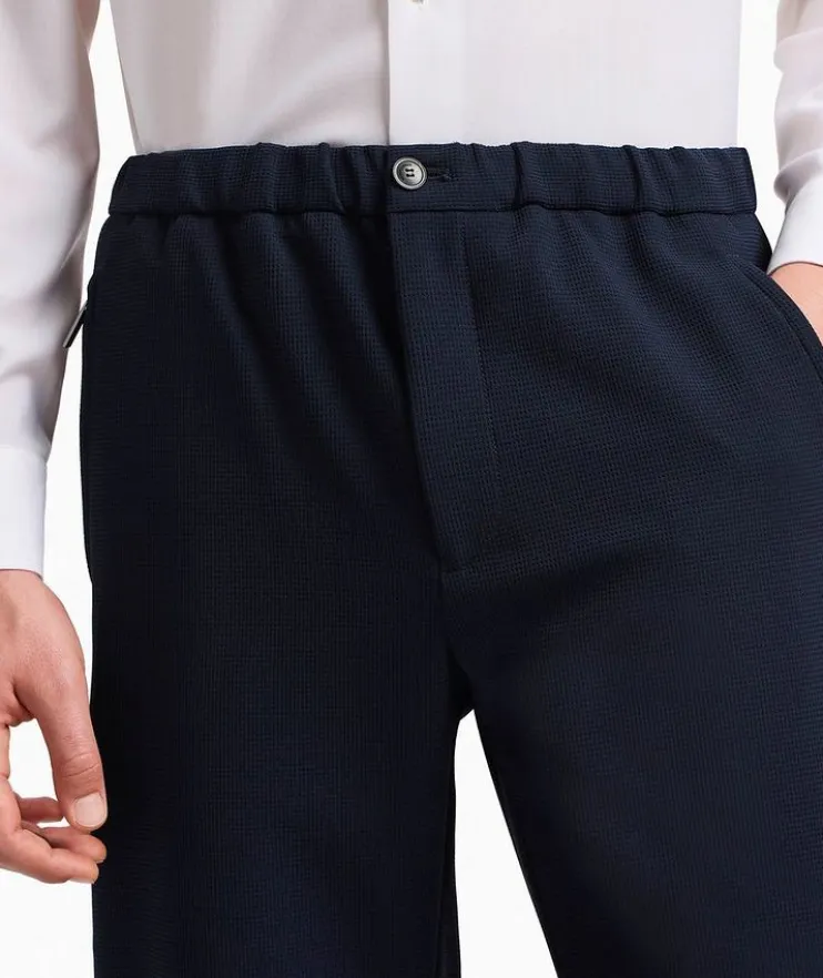 - Made from micro-textured crêpe jersey with a unique embossed 3D piqué effect, these versatile pants lend a refine look and lightweight, fluid feel to your work or weekend wardrobe.