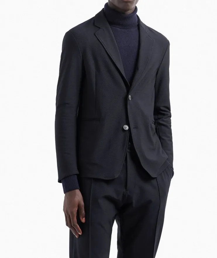 - Made from a lightweight technical-fabric jersey with a special micro-textured weave, this unlined sport jacket with three-dimensional effect adds a layer of comfort and polish to your business or smart-casual collection.