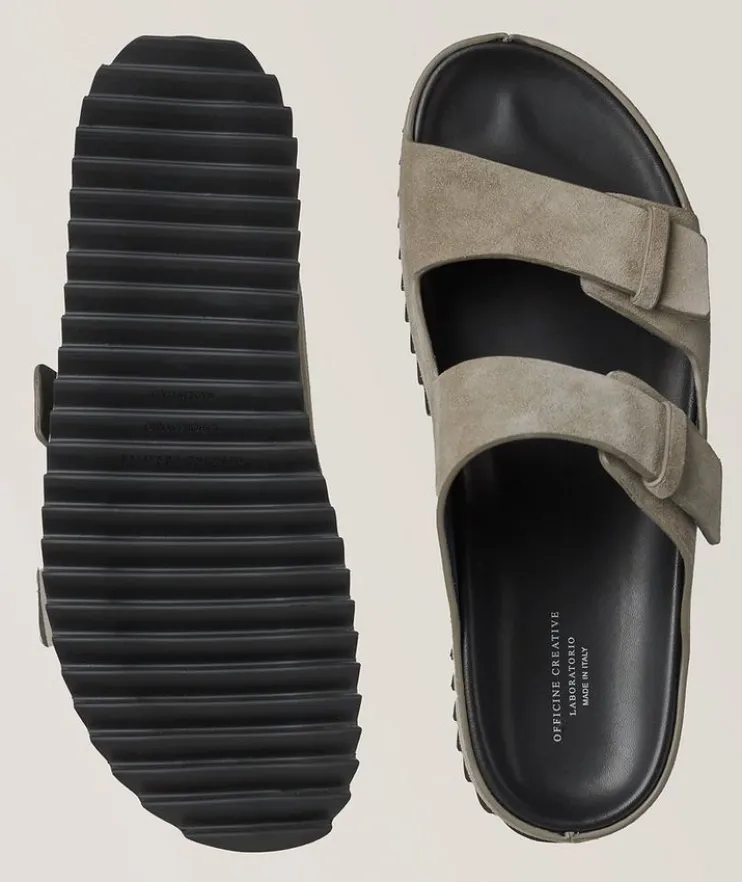 - A refined, understated design, these handcrafted slip-ons feature a molded-footbed and double-strap silhouette for a comfortable fit with an extra-light tread rubber outsole to ensures maximum flexibility.