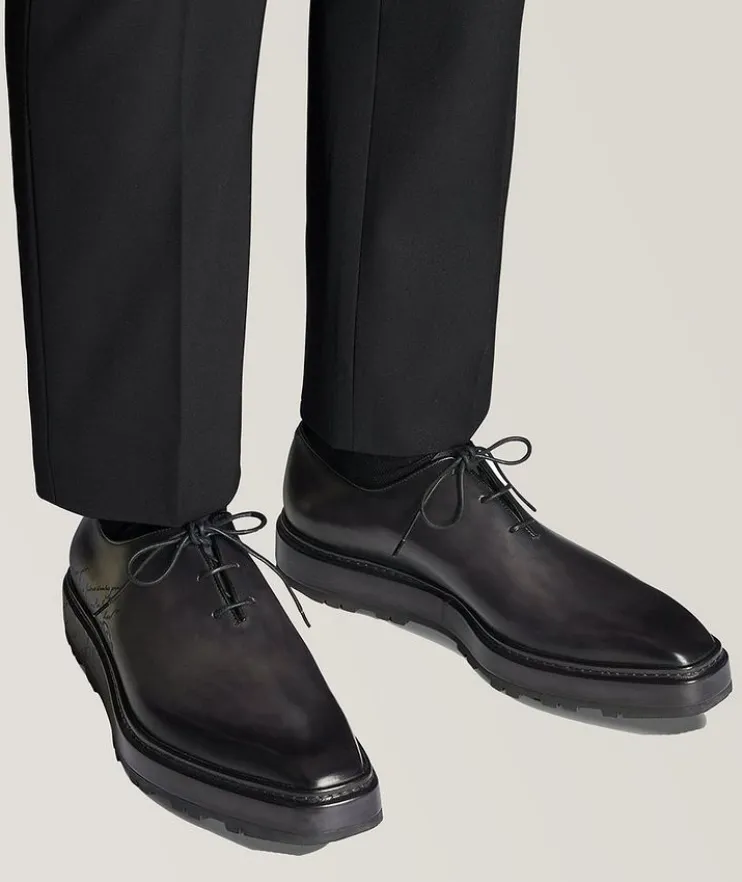 - The Alessandro Alto Oxford, an updated take by the initial style Alessandro Berluti created in 1895, has everything you could desire in such a shoe — the lace-up style features three-eyelets, Incollato construction, functional rubber outsole, and the signature Scritto motif. Composed of the brand’s sought after Venezia calfskin in their Nero Grigio finish, it’s an unerringly sophisticated and modern design that is sure to outlive the others.