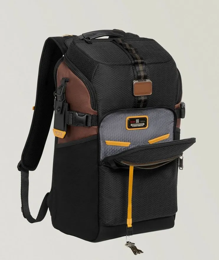 - From the Alpha Bravo Collection. A must-have companion on any trip, this technical travel backpack features fabric woven with high-performance fibers engineered for superior durability. Designed with multiple pockets to keep belongings safe and organized, including designated pockets for laptop, tablet, and phone.