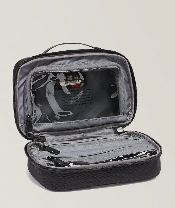 - Designed to fit into the exterior U-zip pockets of many, the Alpha Split Travel Kit by TUMI brings you easy access and storage for all your everyday toiletry needs. This utility kit features a top handle, zip entry to main compartment, anti-microbial lining for protection against bacteria. Travel in style without leaving behind your belongings.