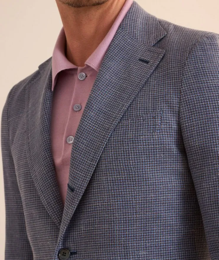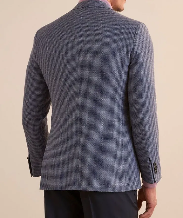 - Beautifully crafted in a slim silhouette, this elegant sport jacket boasts a micro-check design that adds a playful, sophisticated element to any ensemble. Finished in a lightweight blend of wool, silk and linen. The sleeves of this garment are unfinished. Alterations are needed for sleeve length adjustment and button attachment.