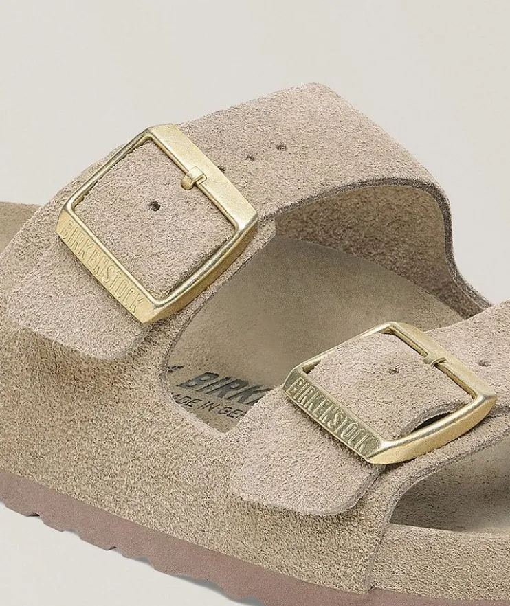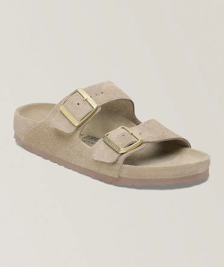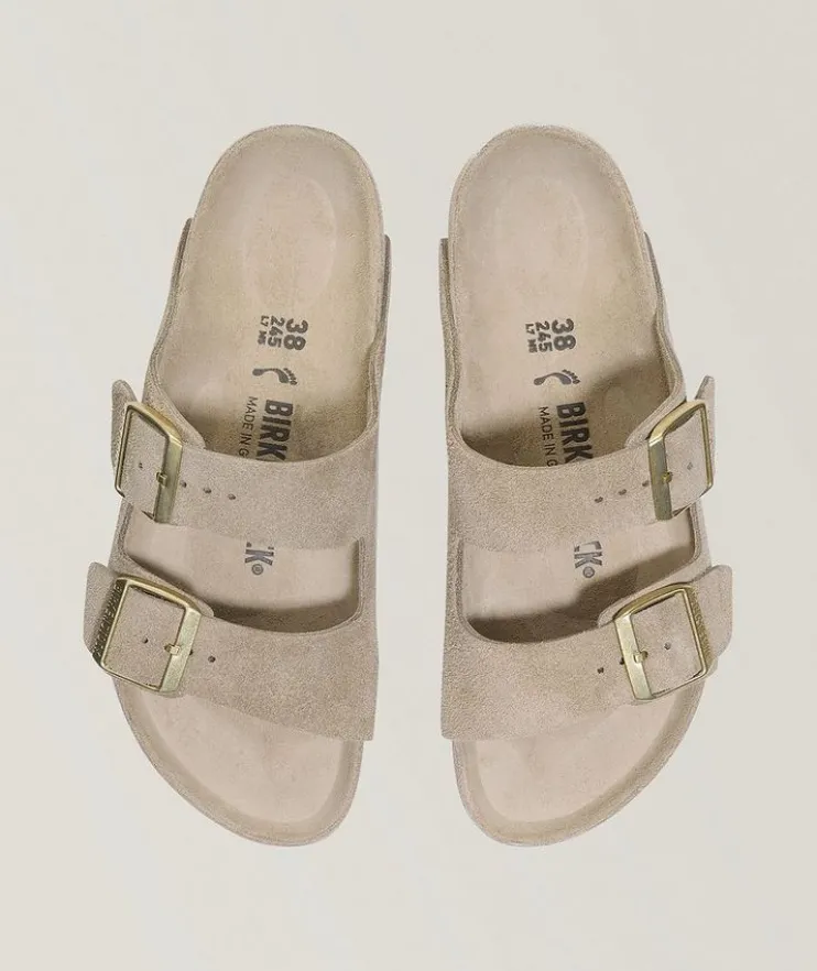 - An icon of timeless design and legendary comfort, this velvety suede sandal with contoured footbed has been defining style since 1973. For half sizes, the brand recommends choosing the next size up to achieve the best fit.