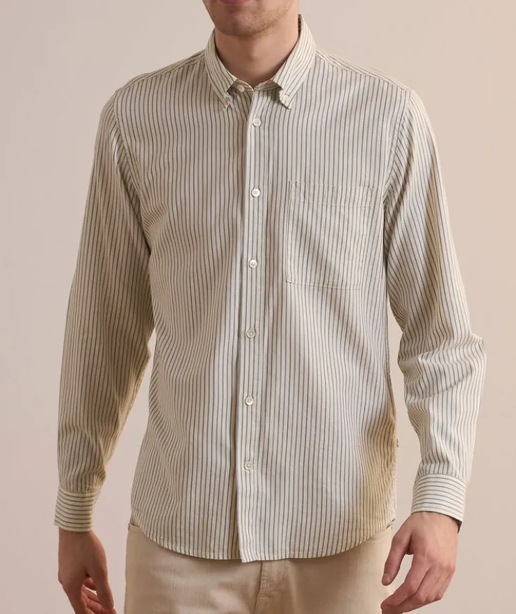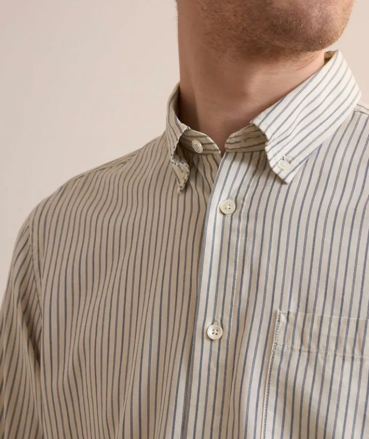 - Classic button-down shirt crafted in soft organic cotton and TENCEL™ modal blend is topped with Mother-of-pearl buttons, a chest patch pocket and allover striped finish.