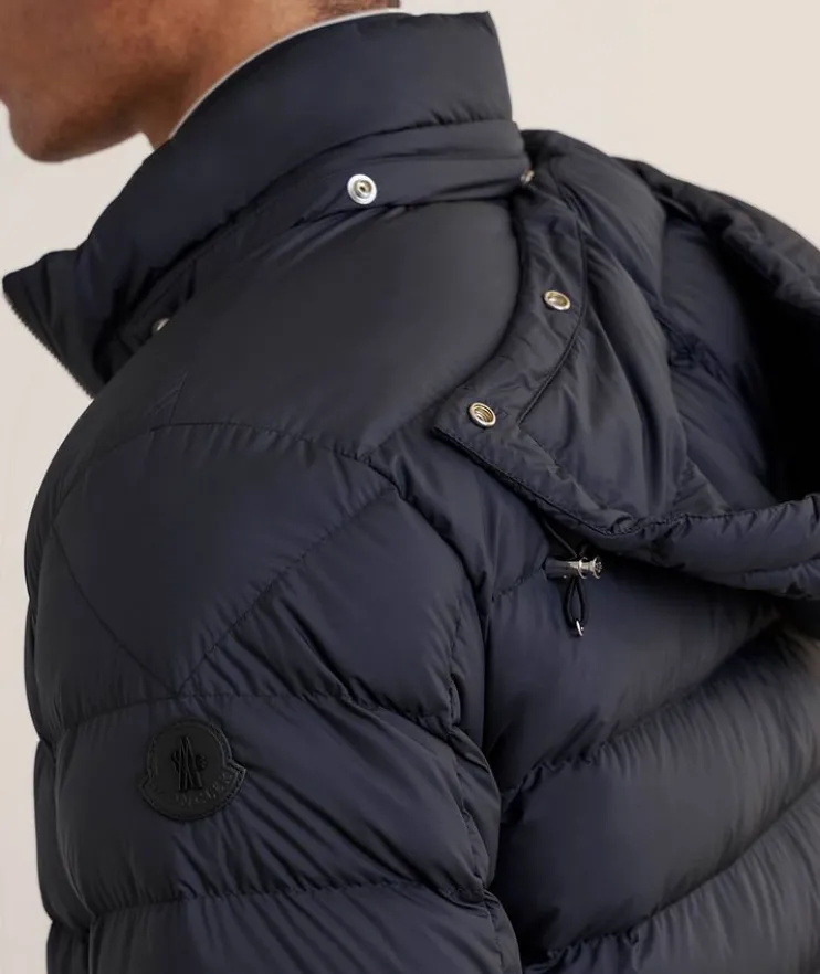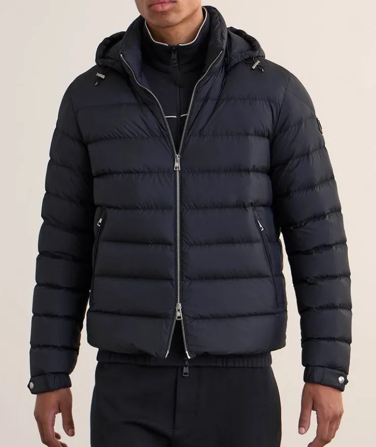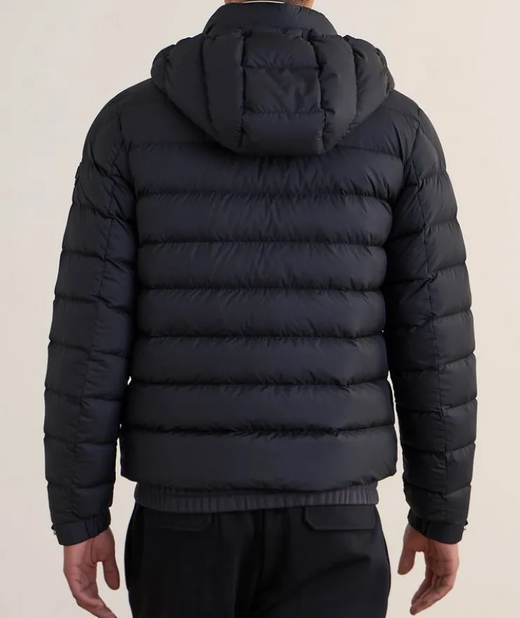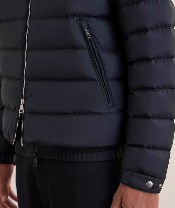 - Designed with protection and warmth at top of mind, without sacrificing on style, this down jacket combines luxury and comfort in a streamlined silhouette. Crafted from Airsoft technical fabric, a lightweight and durable fabric with a water-repellent finish, and finished with a detachable hood and down filling.