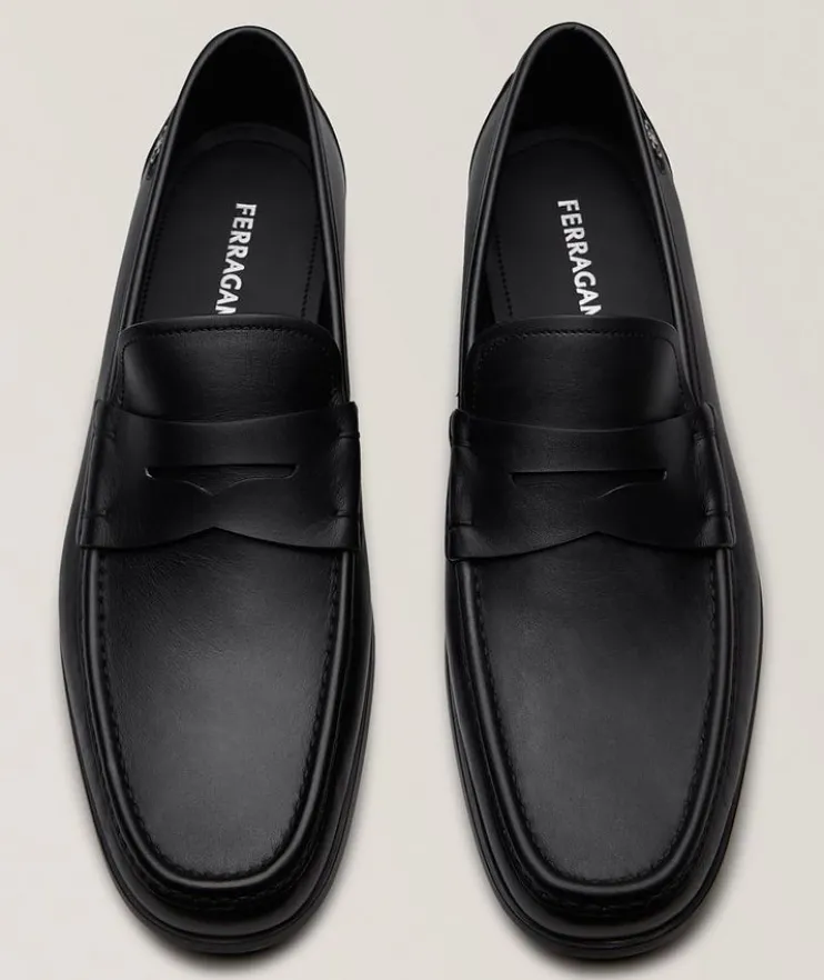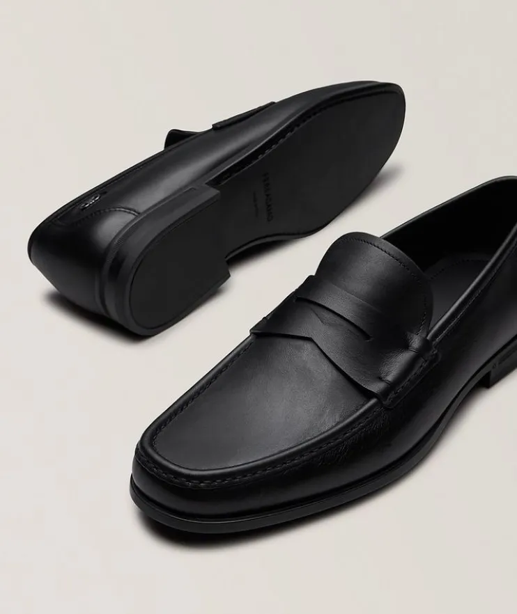 - A nod to classic style, this artisanally-treated penny loafer works day or night. Accentuated by a handcrafted double seam and a beautifully shaped strap across the instep, this calfskin leather slip-on is finished with a durable leather sole with stitch reinforcement. For a custom fit with your loafer, choose a full size down from your sneaker size to allow the snug leather to conform to your foot and gradually stretch to your size for a personalized fit over time.