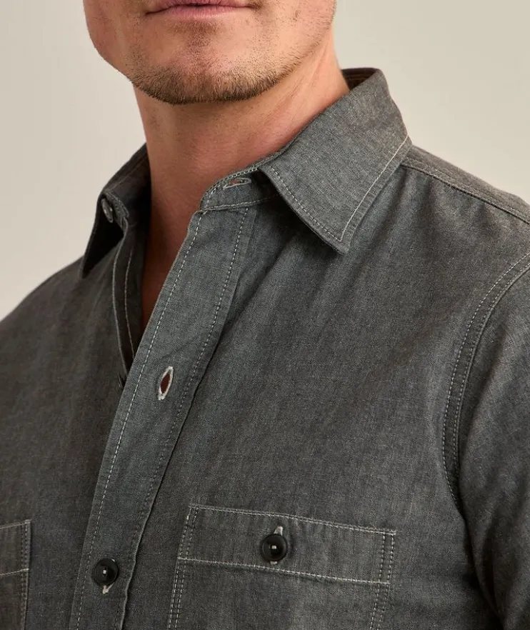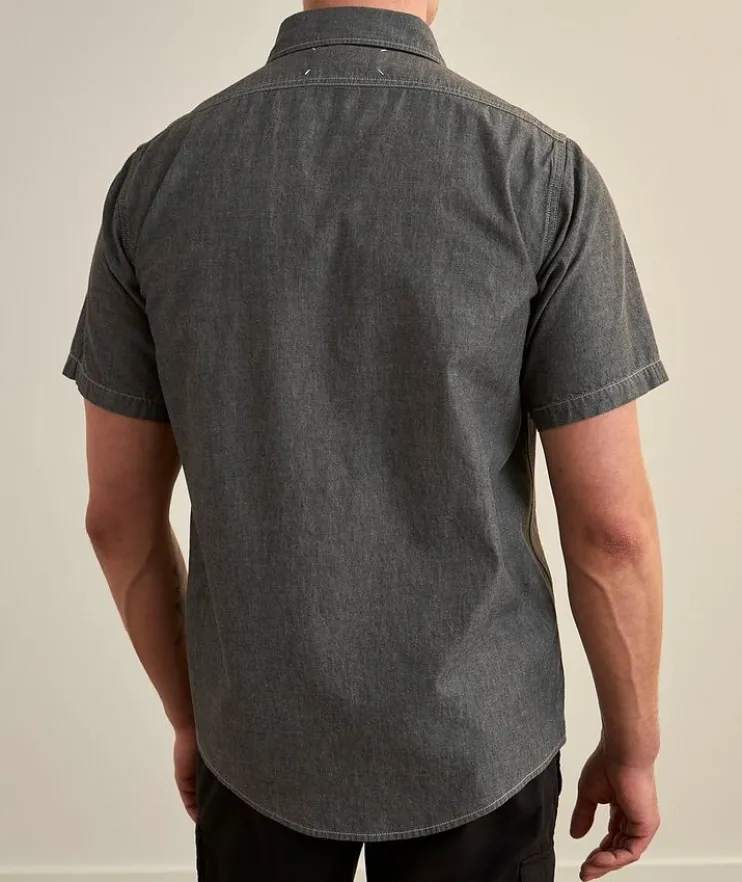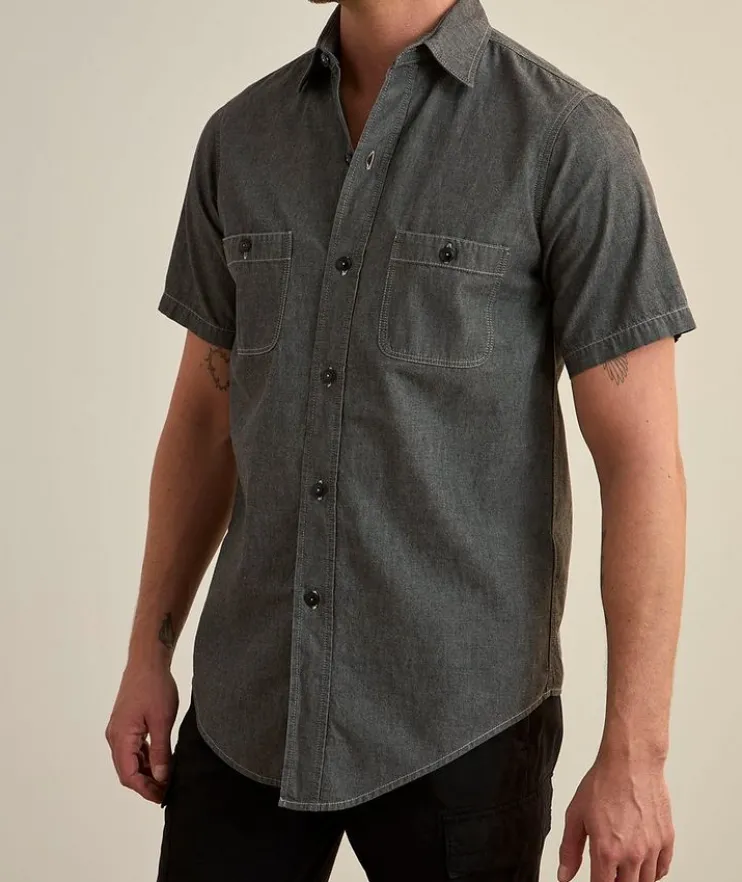 - Bringing together the soft, breathable comfort of cotton with an updated chambray finish, this short sleeve shirt exudes understated elegance with patch pocket styling that effortlessly transitions from casual to polished.