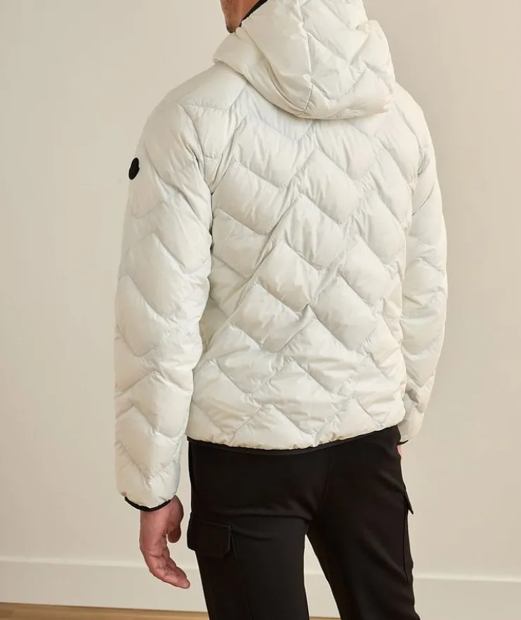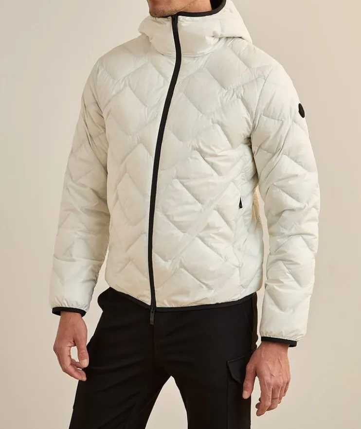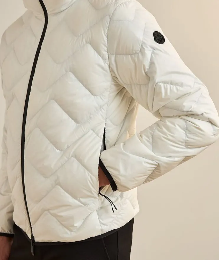 - Made from highly resistant and lightweight nylon ripstop, this sporty puffer jacket boasts a wavy quilted design with a down filling for added warmth.