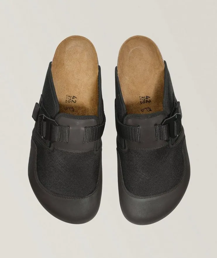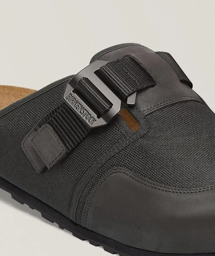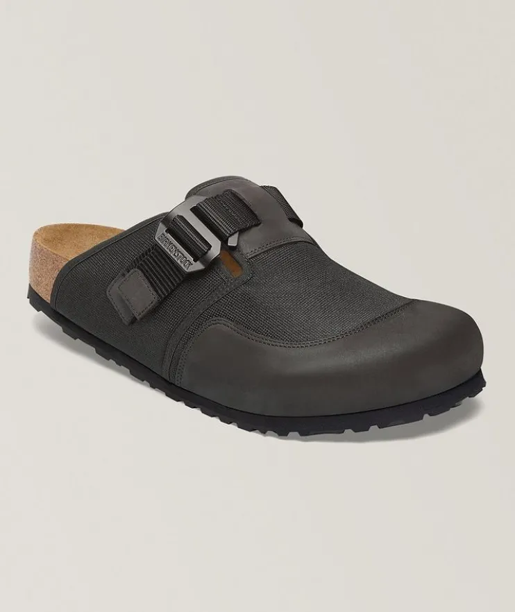 - Nubuck leather and textile merge classic sensibilities with tech-forward style on these comfortable tonal mules. Designed on a supportive contoured footbed, this style maximizes your comfort to match your hustle. For half sizes, the brand recommends choosing the next size up to achieve the best fit.