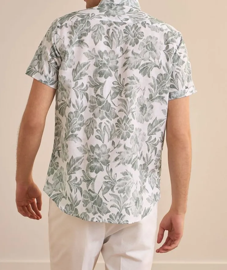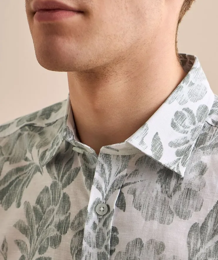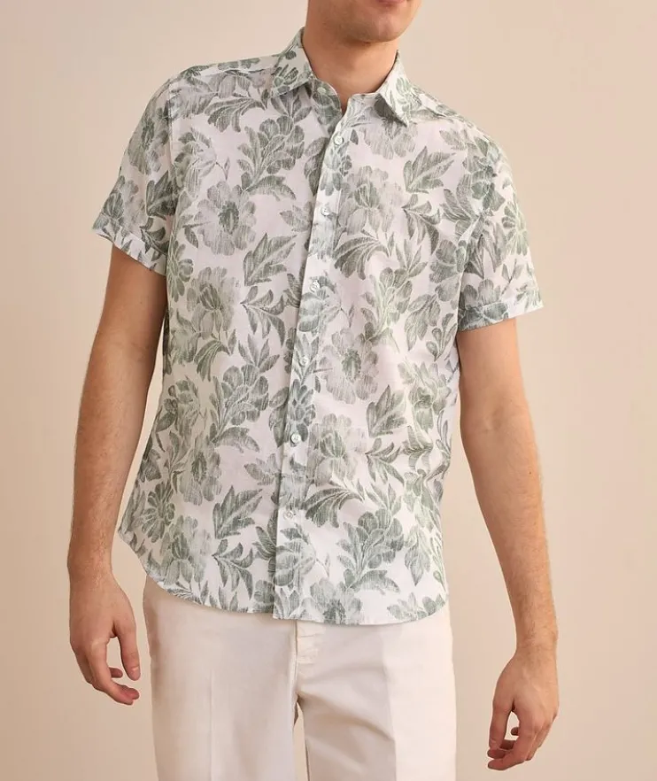 - A beautifully designed floral leaf print elevates this short sleeve shirt crafted from a soft and breathable cotton and linen blend.