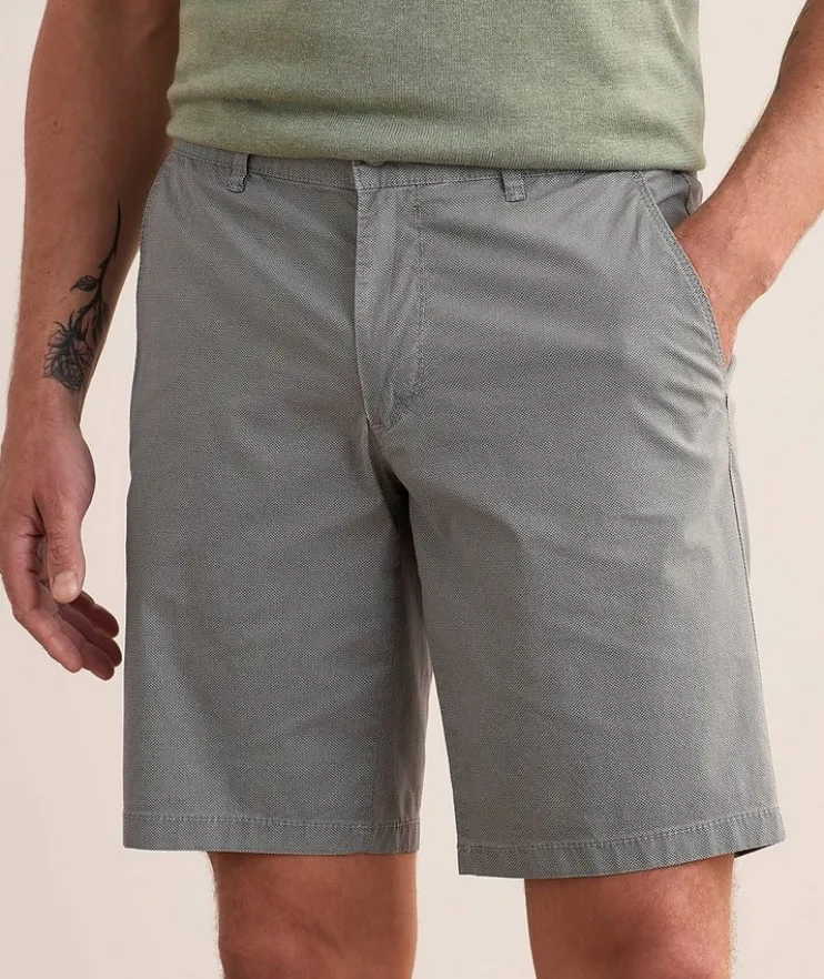- Crafted from a cotton blend with generous stretch, these Bermuda-style shorts add a fashion-forward accent to casual outfits. The ultra-lightweight material is soft, durable and drapes comfortably. Finished with a micro print for an elevated look.