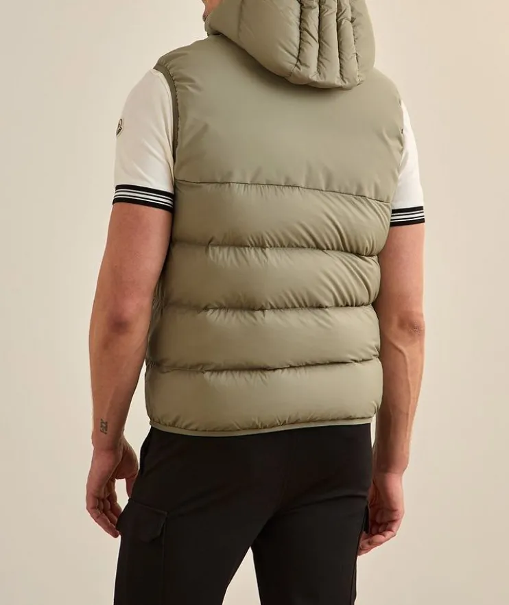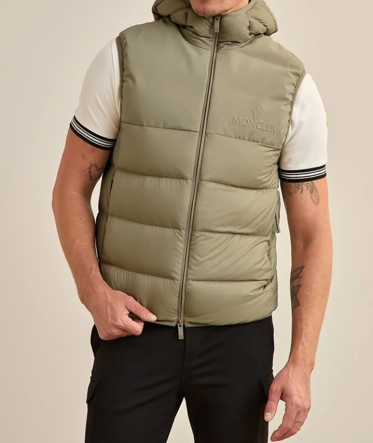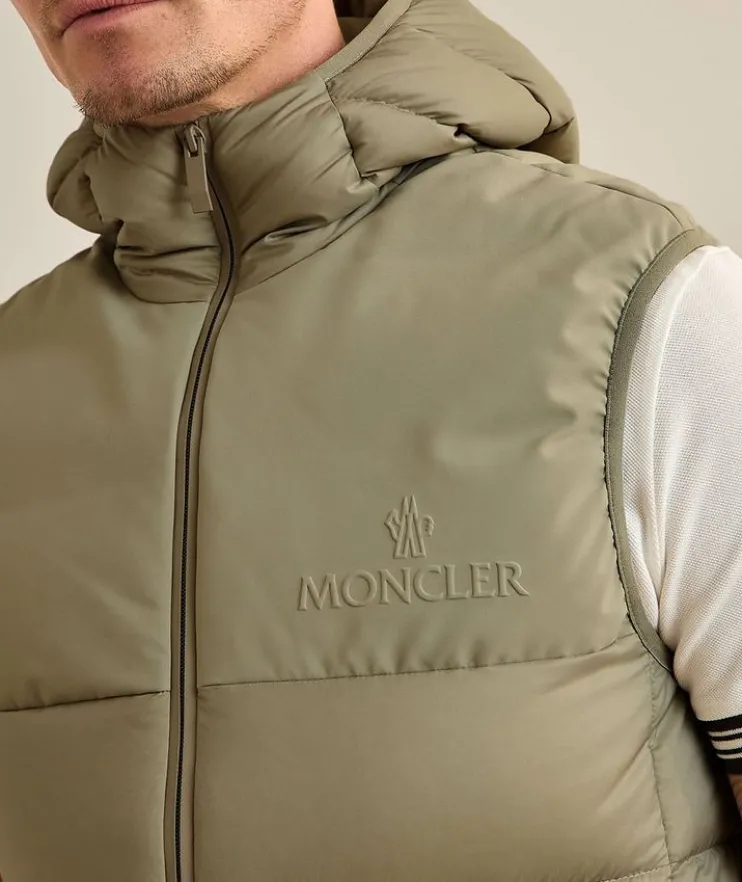 - A versatile design, this down-filled puffer vest features a hooded silhouette with logo detailing that can be easily concealed with a zipper closure for a more streamlined look.