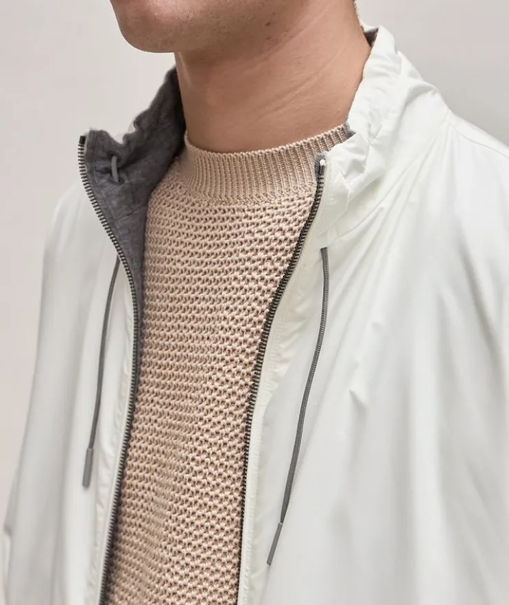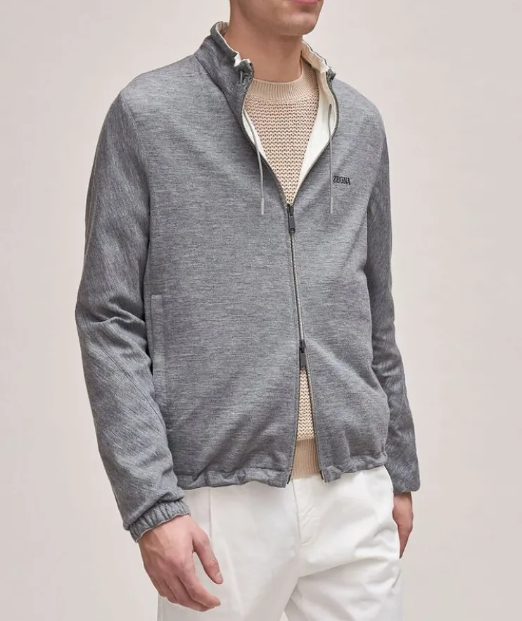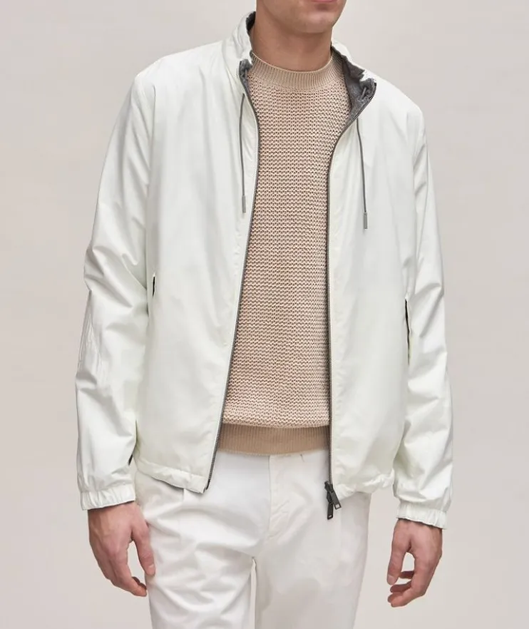 - ZEGNA’s Brezza blouson combines sleek, urban style with functional design. Finished with a water-repellent shell for water-repellency and adjustable hem to block out the wind, while leather details add polish wherever you go. Choose between the microfiber and cashmere blend jersey sides to complement different looks.
