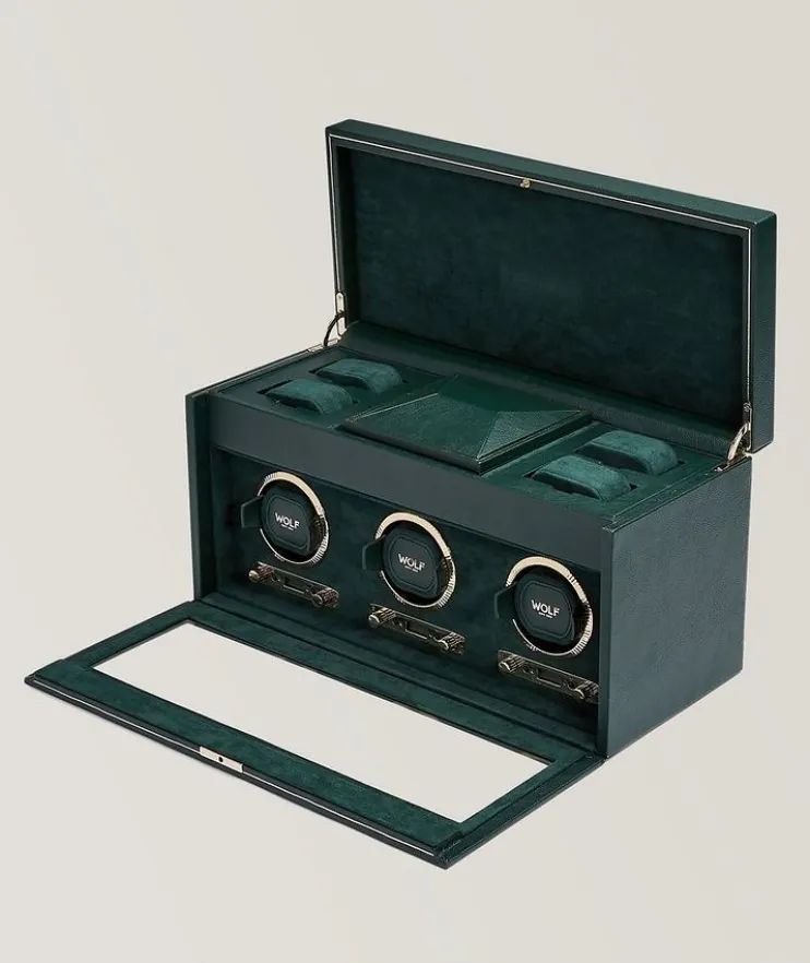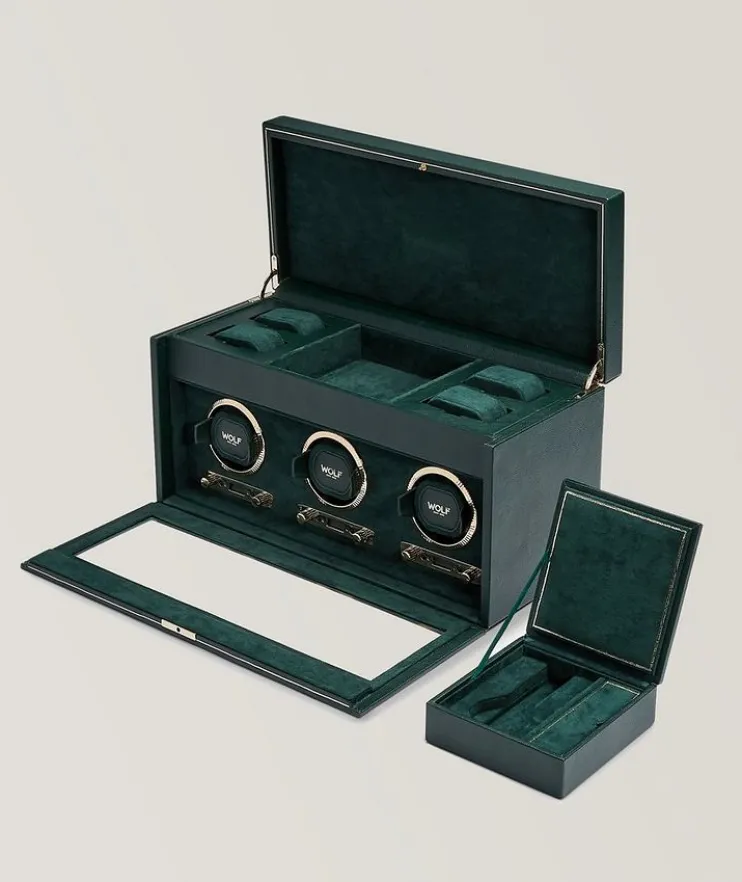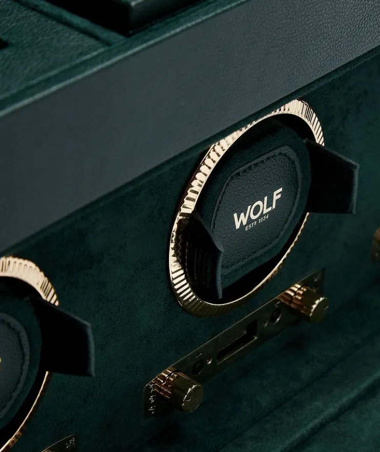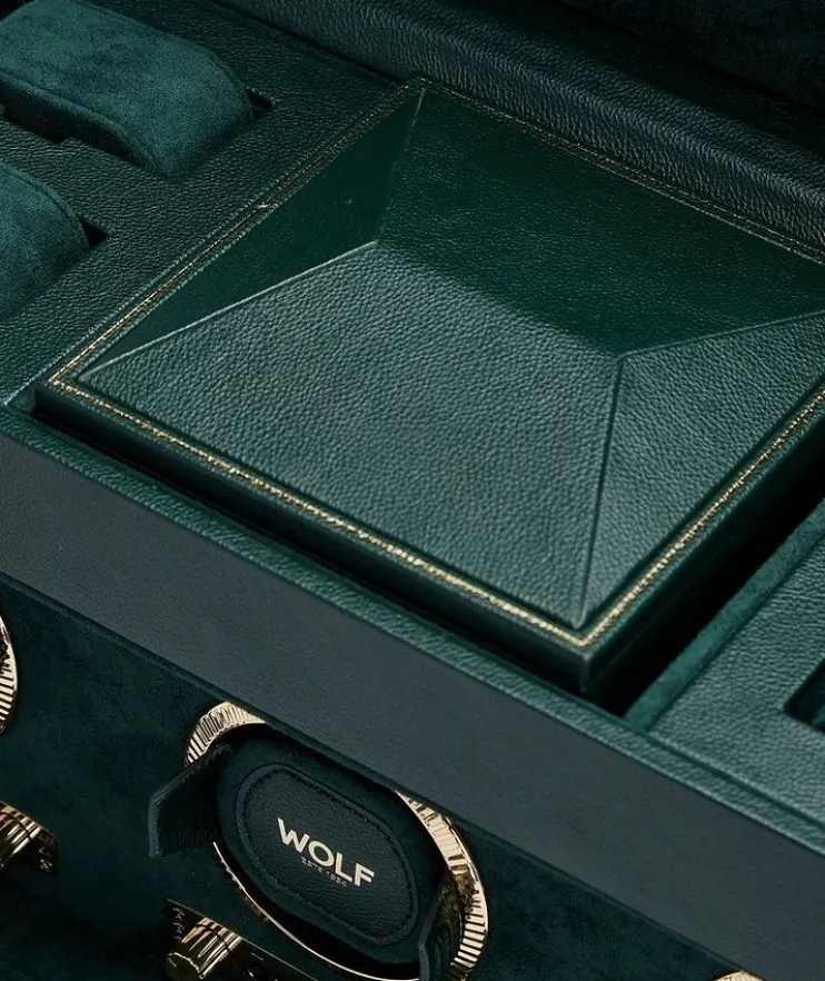 - Since 1834, founder Philip Wolf has based his brand, WOLF 1834, around the belief that one’s sentimental belongings should be properly stored in finely crafted cases when not in use. From watch winders and stands to rolls and boxes, Wolf’s legacy is still passed on to ensure your watches are properly looked after and remain in sublime condition. The brand’s watch winders are sustainably handmade precision instruments that focus on the health of your watch with its patented innovation, counting each rotation instead of roughly estimating the number. Crafted to proudly display each watch, WOLF’s British Racing winder features three watch slots and room for storage to ensure all of your pieces are taken care of.