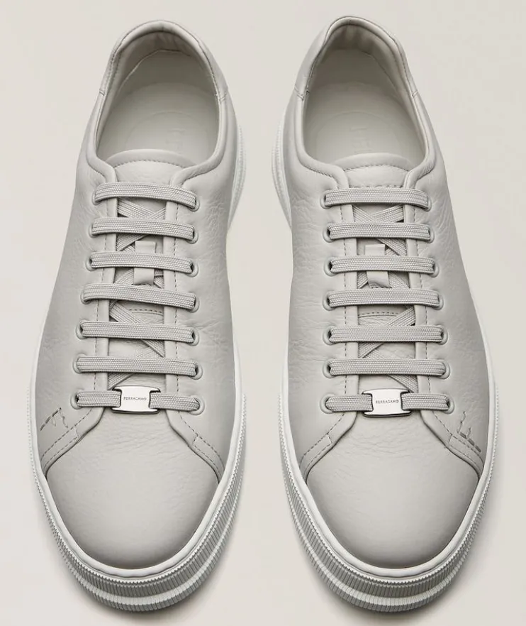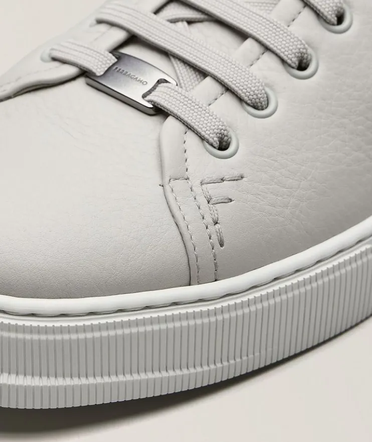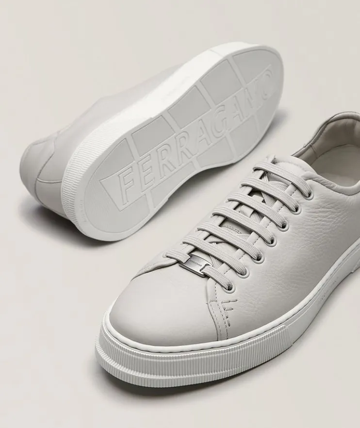 - Refined calfskin enhances the streamlined profile of this low-top sneaker, featuring a delicate embroidered F on the side for a signature look. The textured rubber sole with a custom tread pattern is crafted using a cupsole construction. This style fits wide, we recommend selecting a half size down.