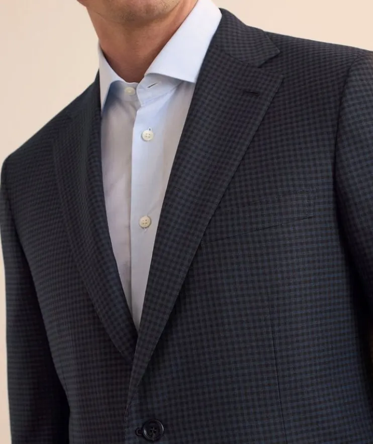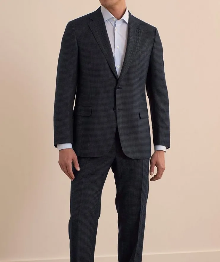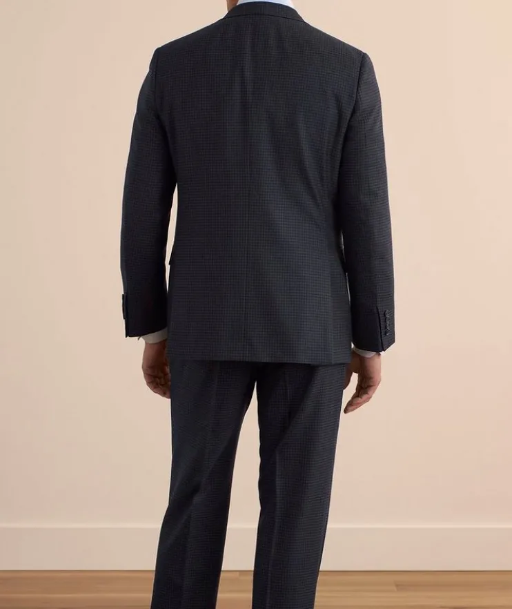 - Expertly crafted in a classic fit, this suit is an example of high-quality Italian craftsmanship with timeless details and smooth wool fabrication. This sophisticated set is finished with a tonal micro check design for a traditional appeal. This garment is unfinished, alterations are required.