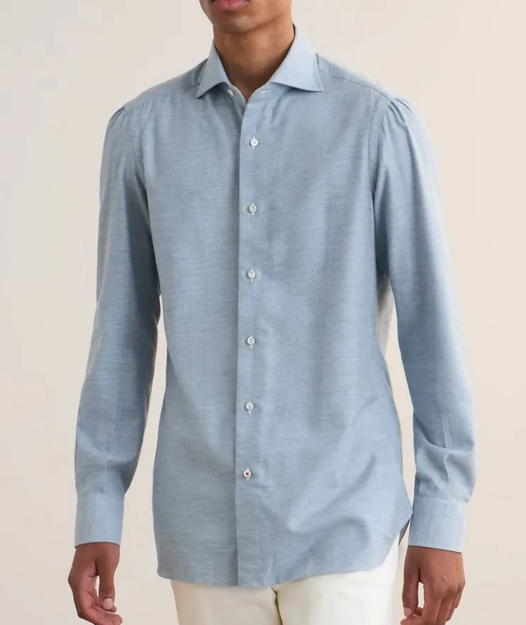- Experience luxurious comfort with this meticulously crafted dress shirt. Woven from a soft, supple cashmere-enriched cotton, this design offers a sophistication look with a relaxed feel – perfect for any occasion.