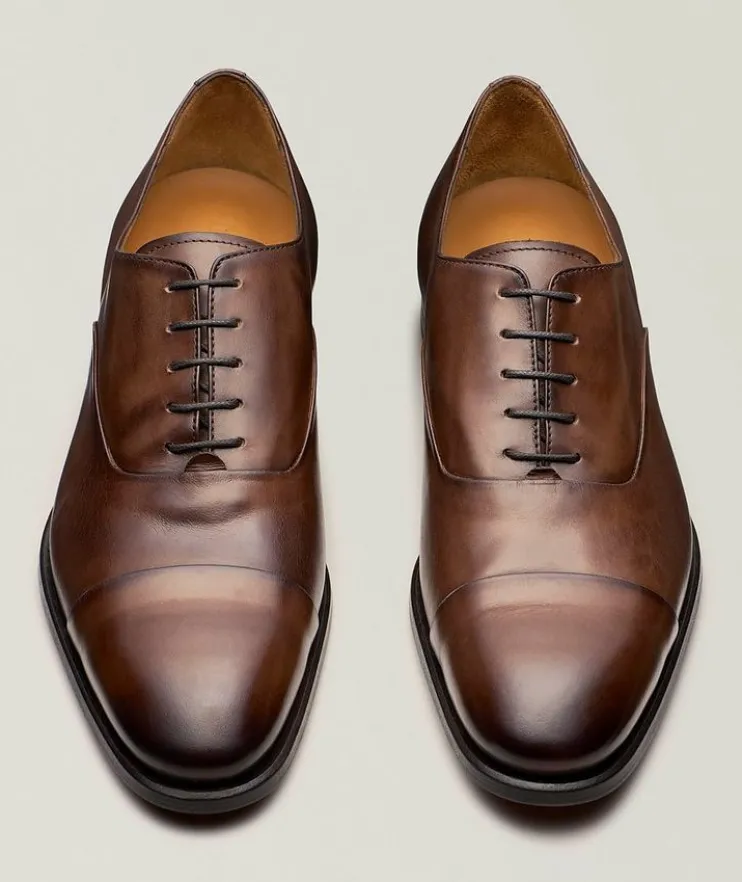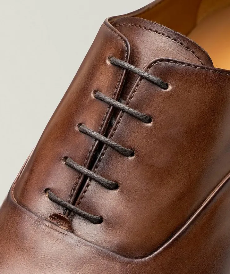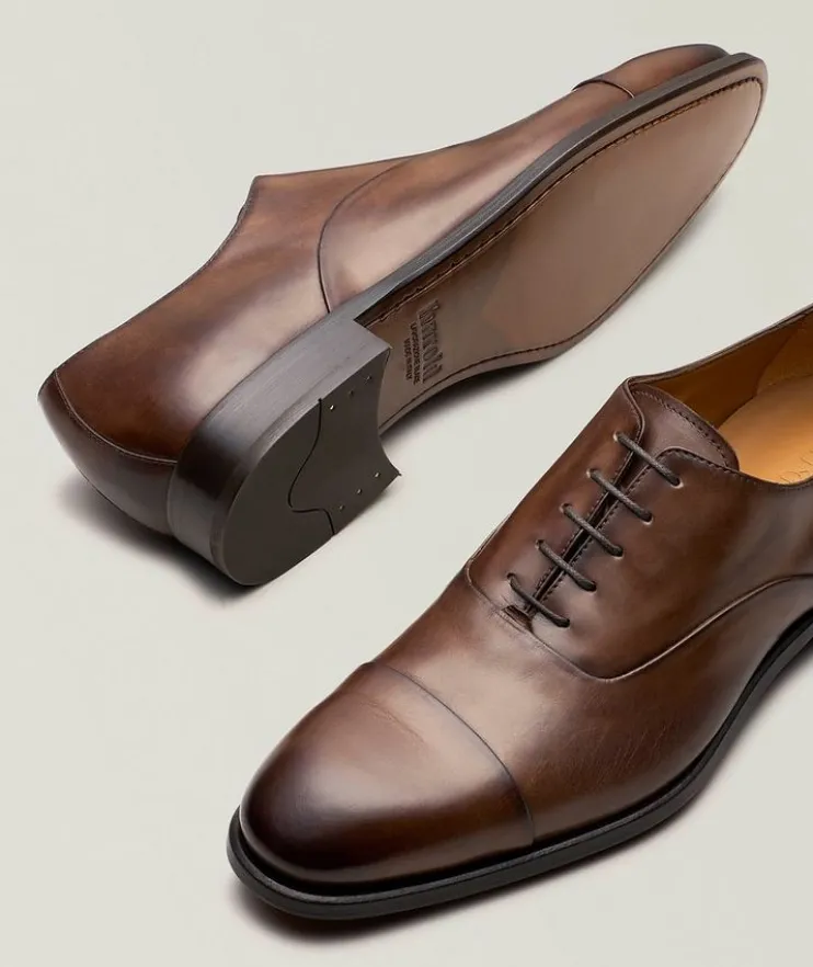 - Boasting elegant lines and a burnished finish, this classic leather Oxford is crafted using Blake construction where the sole is stitched directly to the insole and through the upper of the shoe, resulting in a sleek, flexible and lightweight shoe with a more streamlined appearance.