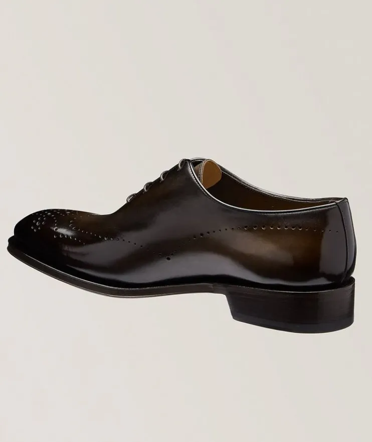 - Paying homage to the brand’s artisanal heritage and modern styling, these oxfords with hand-treated leather upper are elevated with eye-catching brogue perforations. These shoes have been crafted with a wider/EE width. Consider a half-to-full size down for a standard fit.