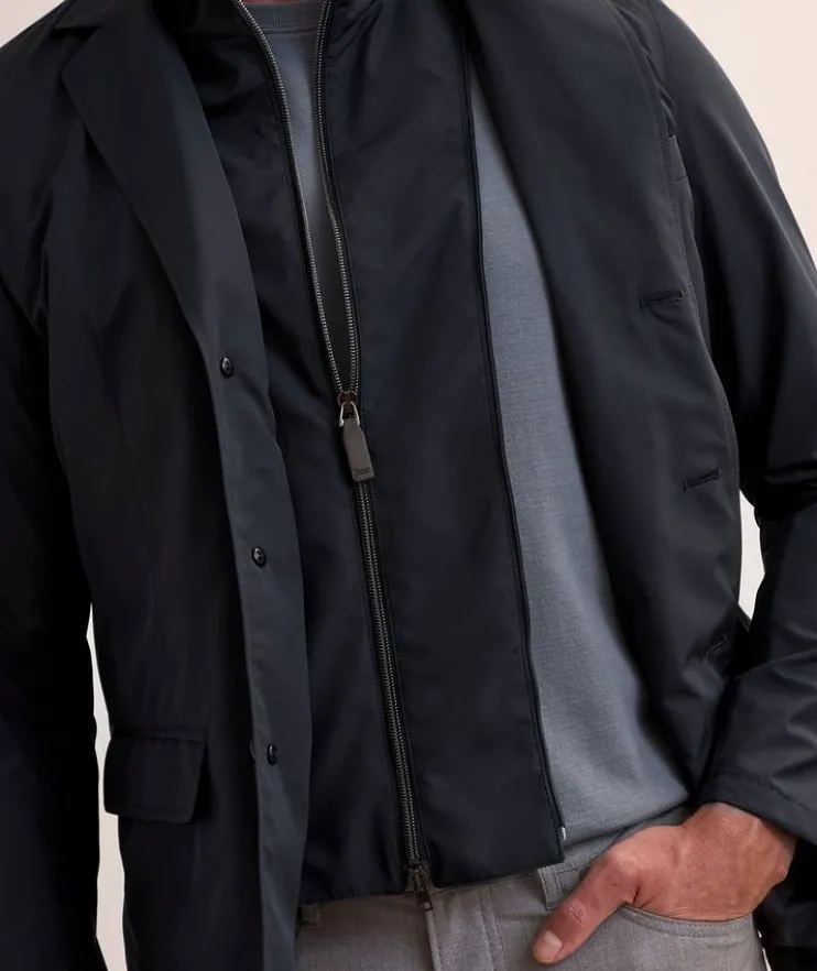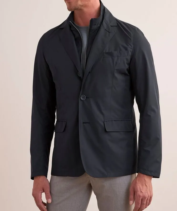 - Combining classic tailored style with adjustable construction, this lightweight sport jacket features an inner bib which can be worn attached or removed based on the weather and style choices.