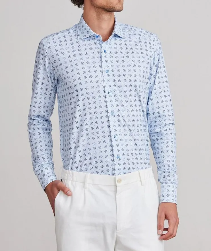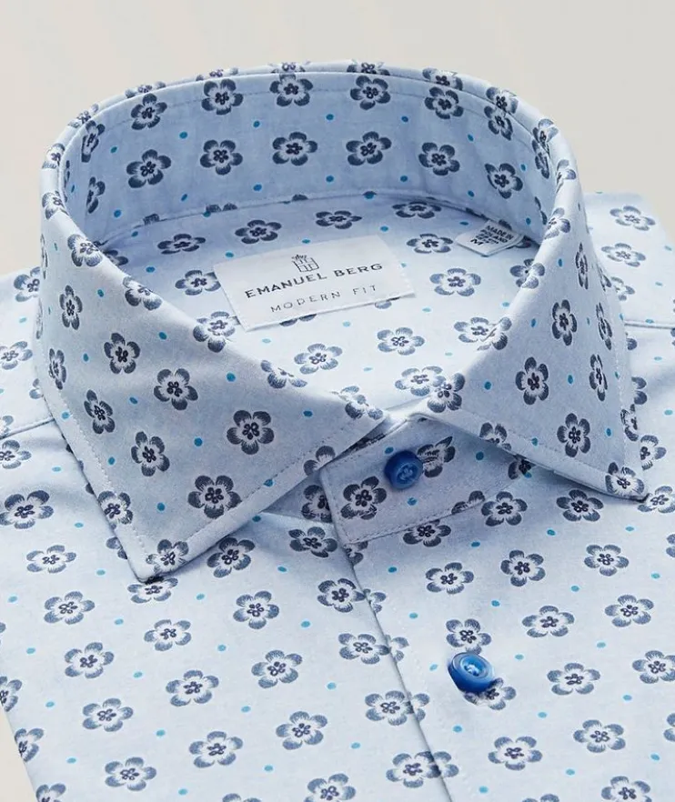 - Designed with movement and comfort in mind, this soft touch floral shirt combines elegance and a sportswear spirit. Made of breathable Italian 4Flex Jersey cotton, this business staple is perfect to cultivate a workwear wardrobe authentic to your personal sense of style.