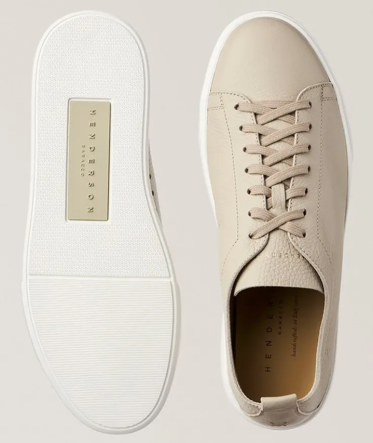 - These sleek sneakers are crafted from leather in a low-profile silhouette with clean lines and minimal detailing for a smart appeal. These shoes have been crafted with a wide fit, we recommend selecting a half size down.