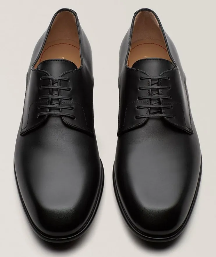 - Smooth Italian calfskin leather in a matte finish brings understated elegance to this derby kept simple in a plain-toe design. These derbies have been crafted with a wider/EE width. Consider selecting a full size down for a standard fit.