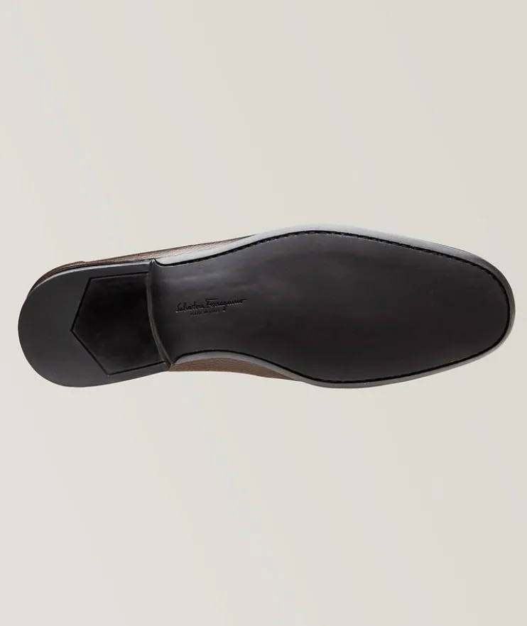- These textured leather slip-ons from Salvatore Ferragamo are an enduringly stylish option. The refined loafers are crafted from buttery-soft calfskin that gently moulds to your feet for unparalleled comfort. They’re punctuated by the Italian house’s iconic Gancio bit buckle for a luxurious statement.