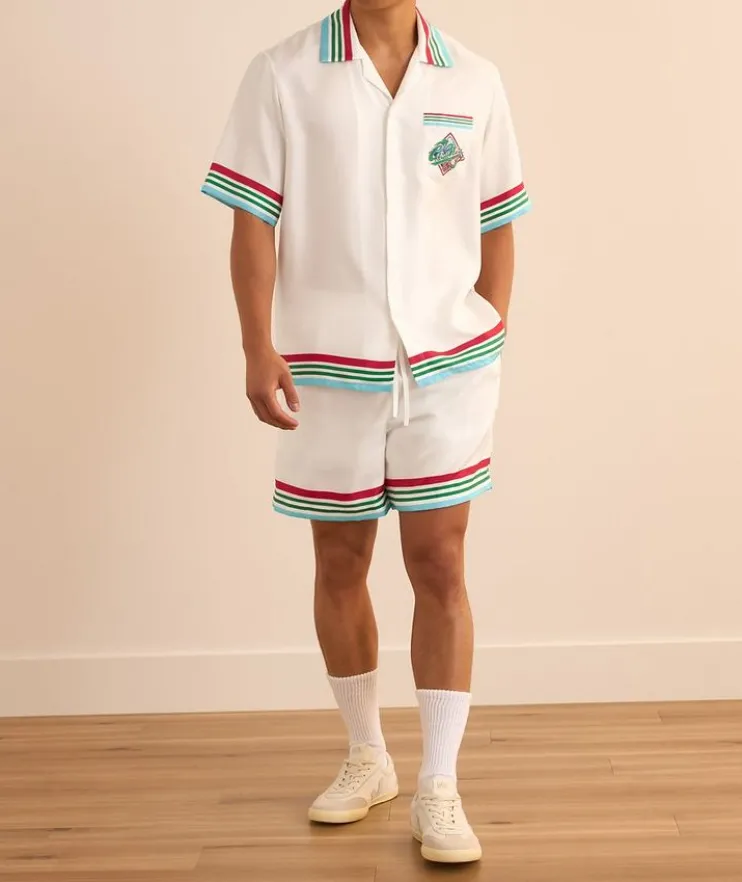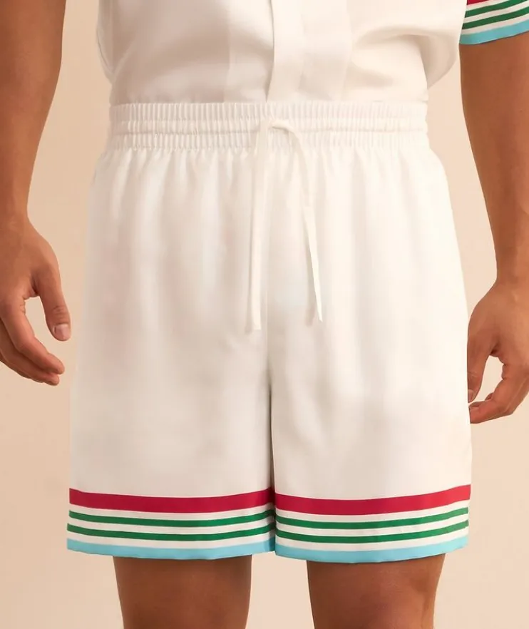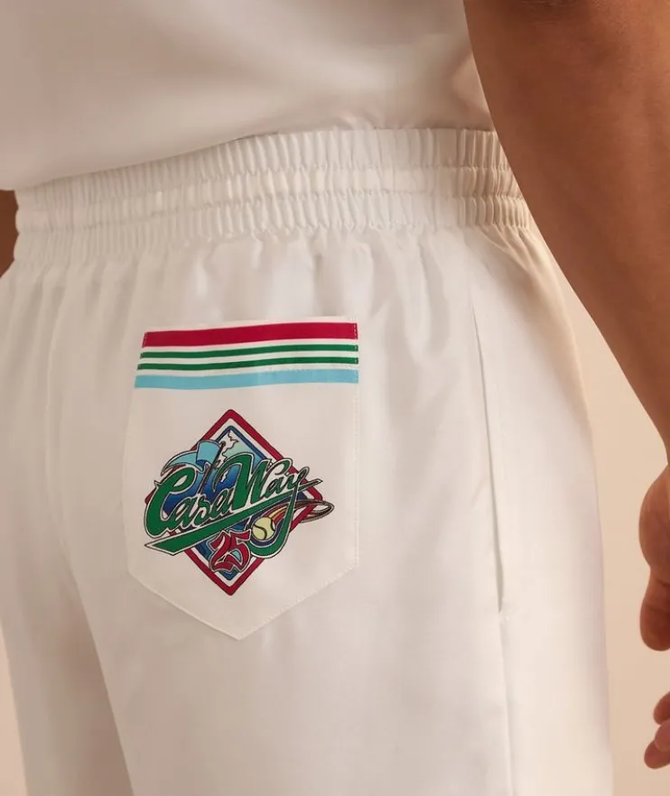 - From the Casa Way World Series. A luxurious take on athletic wear, these sleek shorts are crafted from silk twill with contrasting striped trim at the hem and back pocket. Finished with a print reinterpreting the classic all-American baseball insignia for Casa Way.