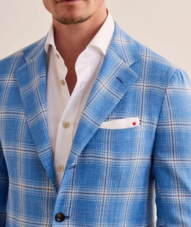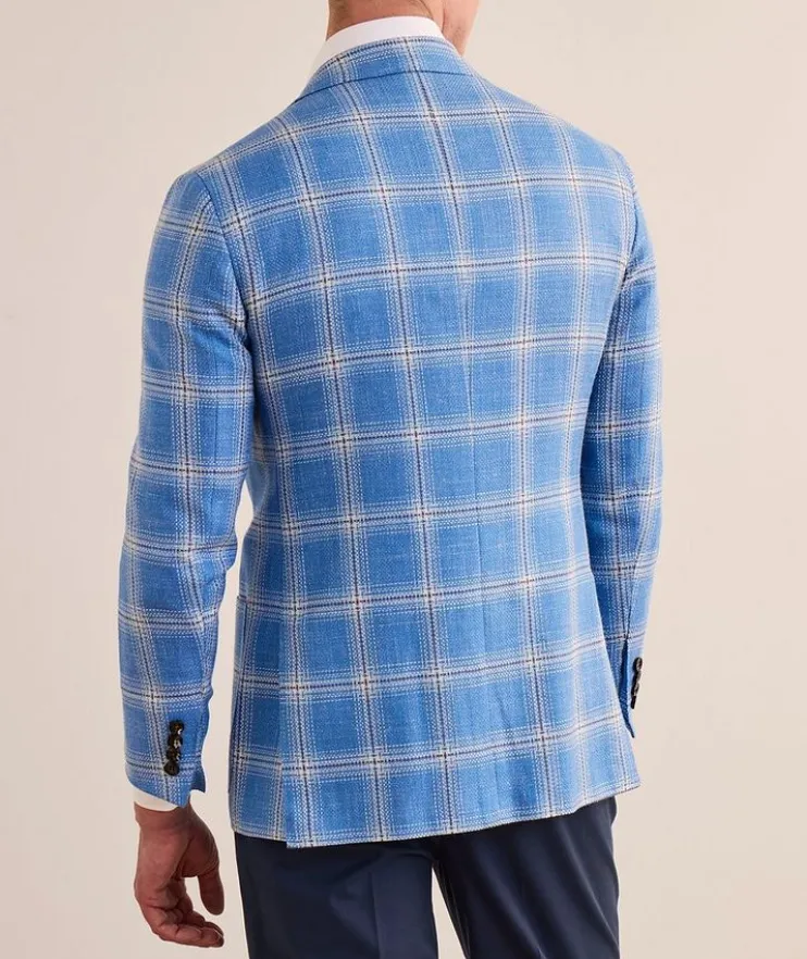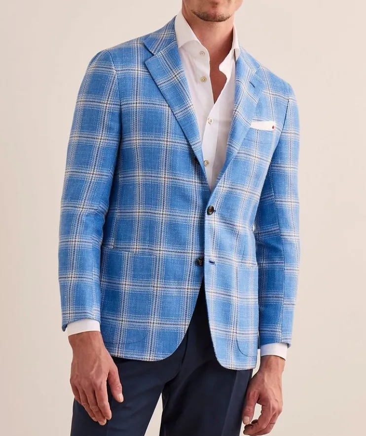 - Impeccably tailored in Italy, this single-breasted sport jacket is crafted from a fine blend of cashmere, wool, silk and linen, and is finished with a classic windowpane check design. This versatile garment is the perfect balance of relaxed elegance and sophistication, ideal for both informal and formal occasions. The sleeves of this garment are unfinished. Alterations are needed for sleeve length adjustment and button attachment.