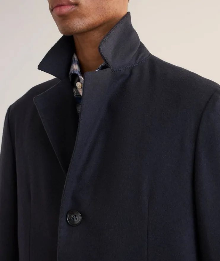 - This timeless overcoat is designed for the contemporary gentleman, combining discreet elegance with refined style. Crafted from luxurious cashmere with a soft, brushed finish and clean lines, this outerwear piece is an elegant choice in any setting.