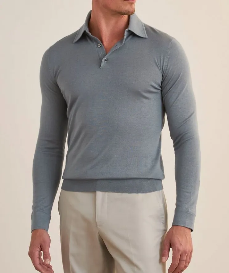 - A sophisticated year-round wardrobe staple, this versatile polo is tailored with a shirt-style collar, buttoned placket, adjustable cuffs and long sleeve silhouette. The blended cashmere and silk fibres enrich the lightweight fabric of the garment with a soft, fluid drape.
