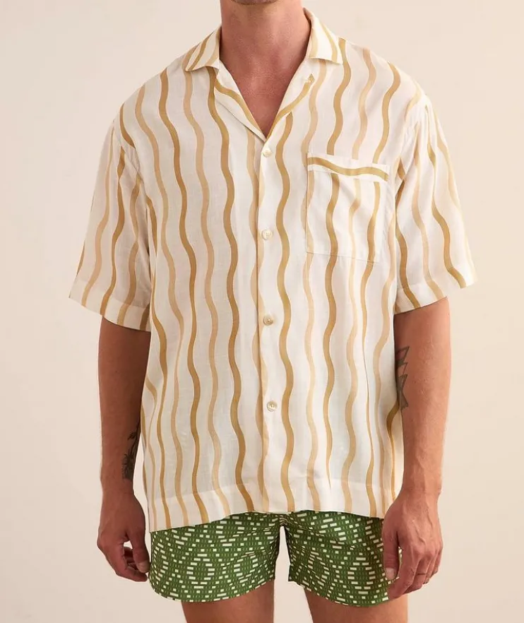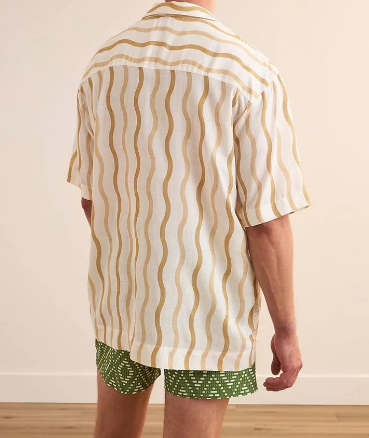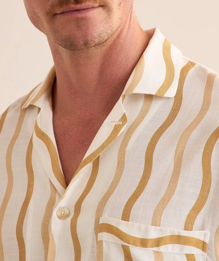 - For relaxed days and restful nights, this short-sleeved sleepwear shirt is made from a beautiful linen-blend and adorned with a chest patch pocket and soothing iteration of the brand’s signature Copacabana Wave design.