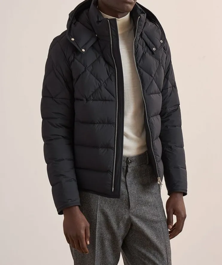 - Detachable and adjustable hood with snap buttons and drawstring closure