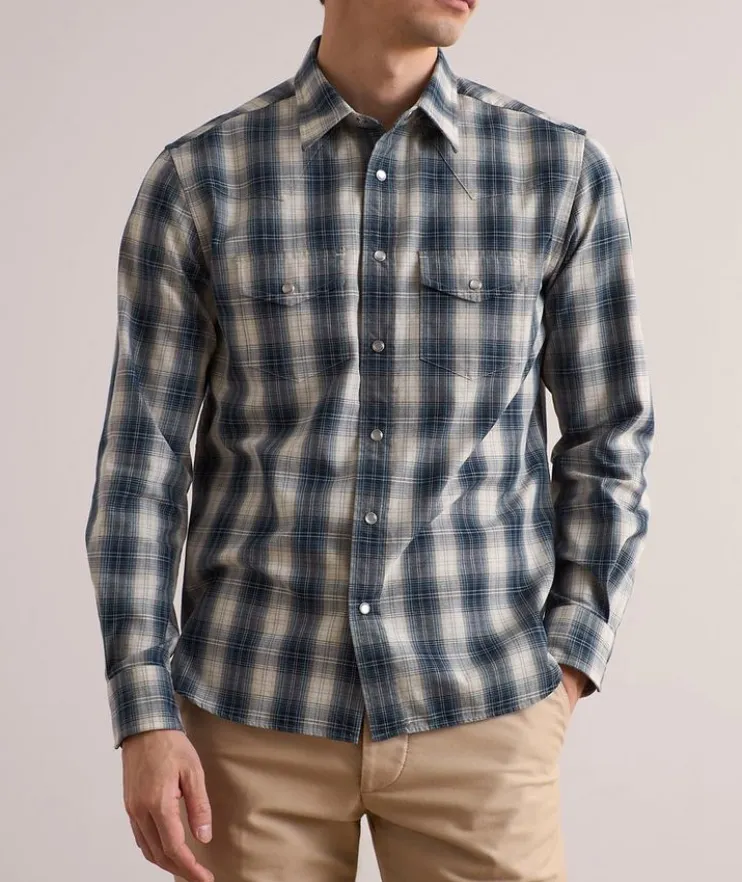 - An off-duty staple with a western-touch, this casual button-down shirt is made from a breathable cotton fabrication and finished in a classic checked design. Wear on its own or layered over a T-shirt for a more laidback look.