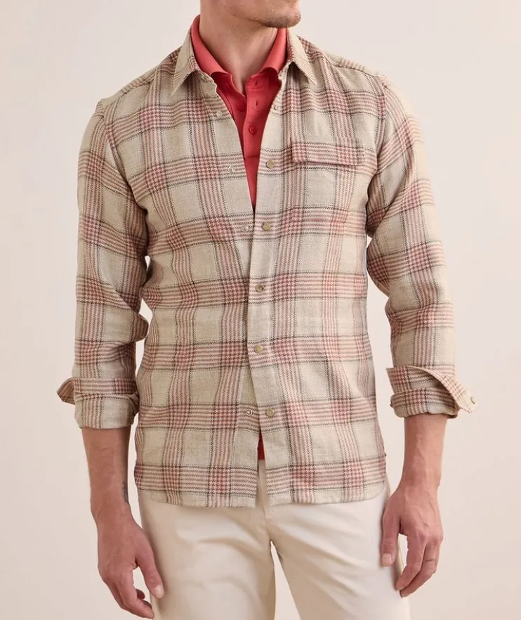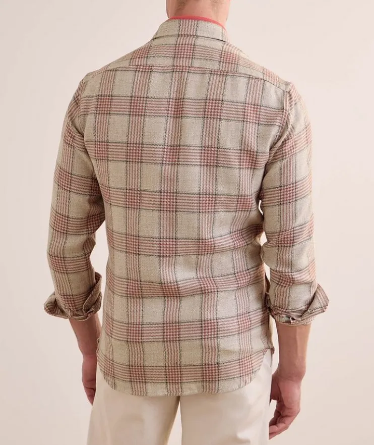 - Crafted from a luxurious blend of linen, silk and cotton with a classic check finish, this on-trend overshirt makes for a stylish layering piece.