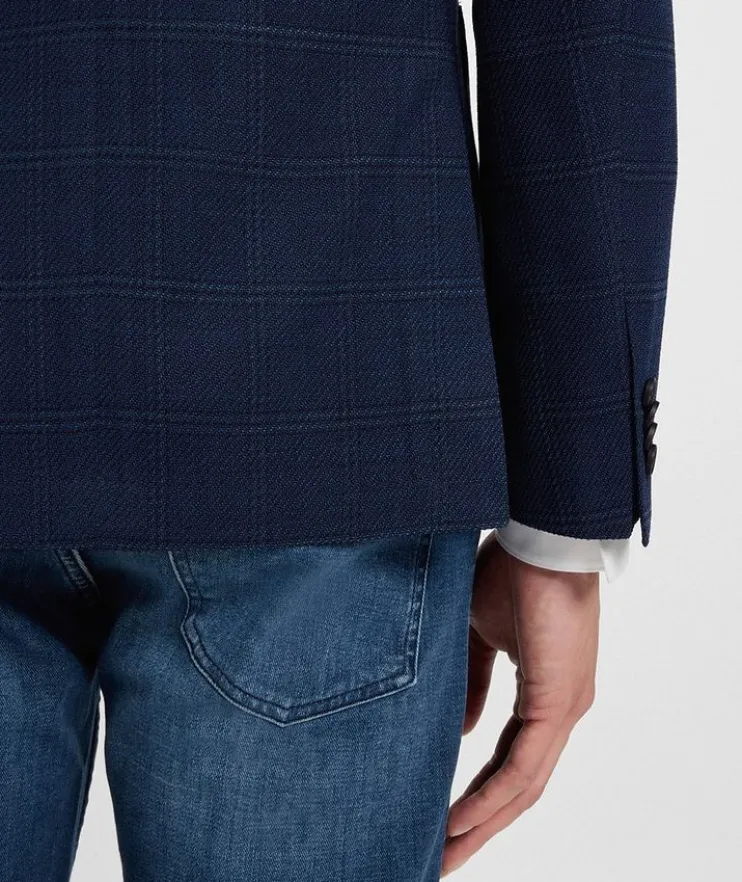 - Crafted from a wool, cotton and stretch fabric with a classic check, this sport jacket is a versatile styling piece. Finished with a slim fit with a soft shoulder for a defined look.