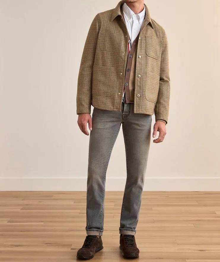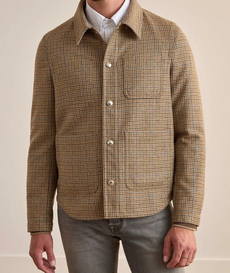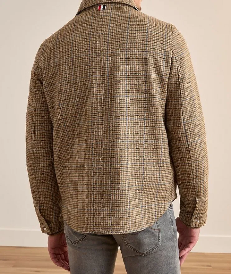 - Boasting a traditional checked pattern, this on-trend wool overshirt makes for an easy and stylish layering piece. Finished with decorative logo snap-buttons and large patch pockets for a modern utilitarian look.