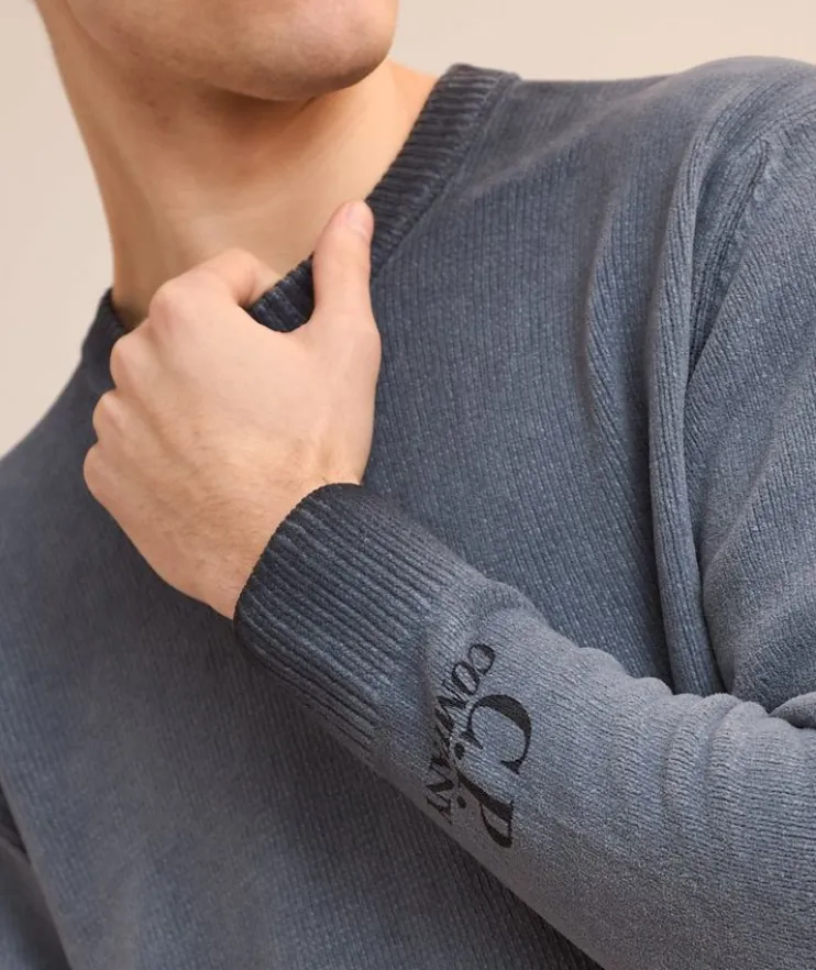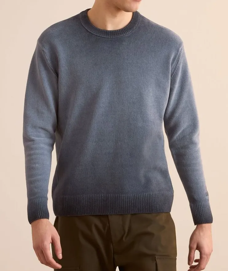 - This crewneck sweater is crafted from soft cotton chenille and garment dyed with an ombré effect for a modern appeal. Finished with logo detailing at the cuff.