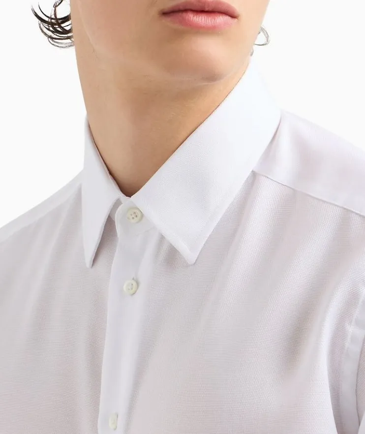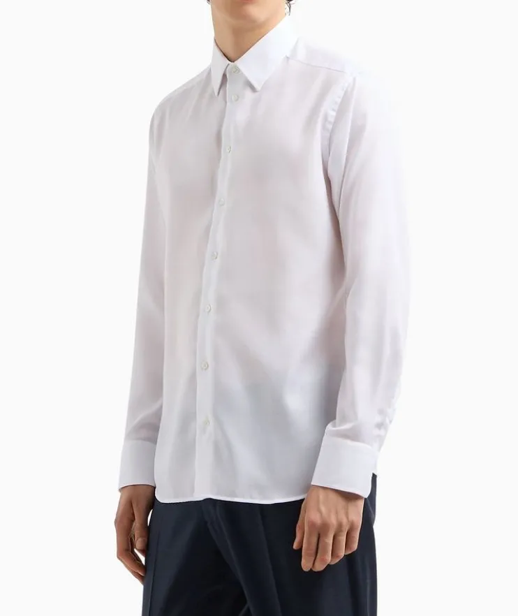 - This shirt has been crafted in Emporio Armani’s New York fit, designed to sit close against the body and taper against the waist to create a slimming silhouette.