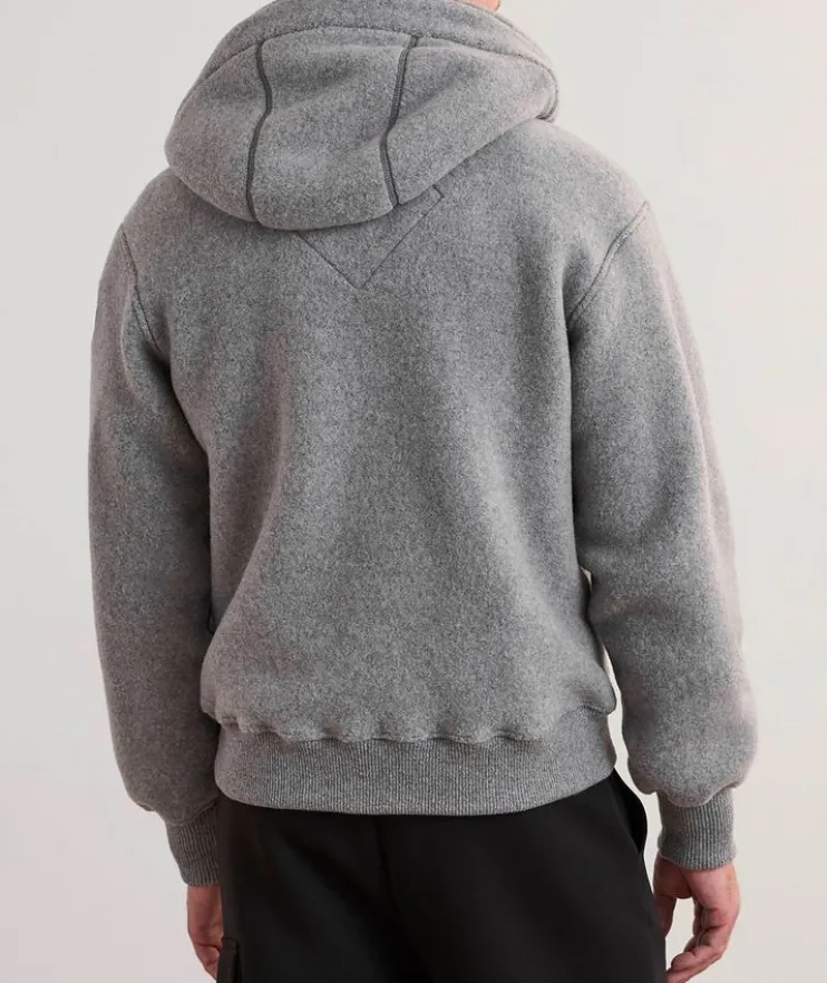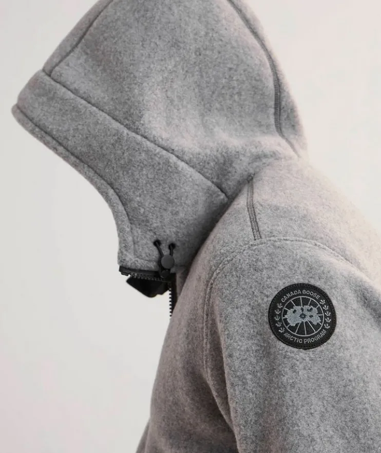 - Crafted from Canada Goose’s Kind Fleece, this bomber-style sweater provides soft and breathable warmth in chilly weather. Designed with a fixed hood and zippered front for a laidback appeal.