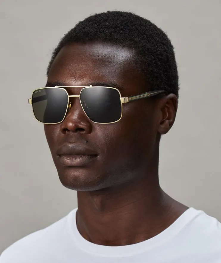 - Gucci takes a strong approach to eyewear, combining the best quality materials with exceptional design and craftsmanship. This shiny black pair comes with polarized green lens, and the brand’s signature web detailing on the temples. Take on the sun this season in style with this fashion-forward pair that will effortlessly elevate all your outfits.