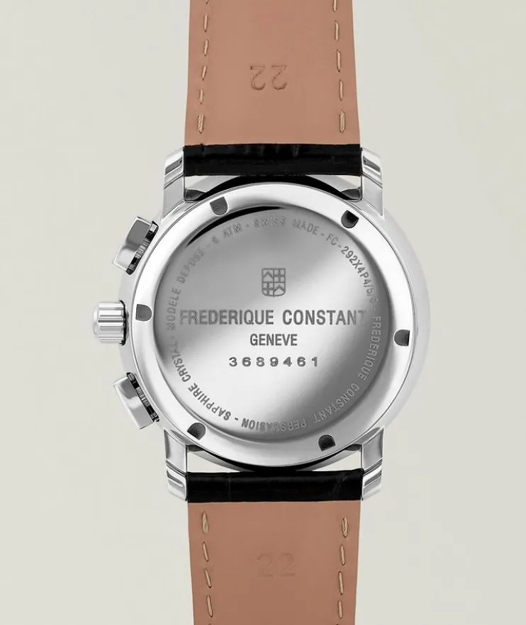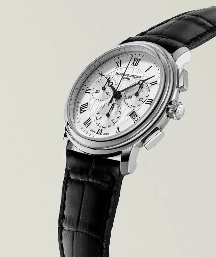 - From the Classics collection. A reliable and durable design, this timepiece features a stainless steel case and croc-embossed leather strap. Powered by a FC-292 quartz movement, this ready-to-wear timepiece boasts Matt and Clous De Paris Guilloché and roman numerals for a timeless aesthetic. All Frederique Constant watches will come with security band. If band is removed or visibly damaged, product cannot be returned. Band must be in place and not tampered with.