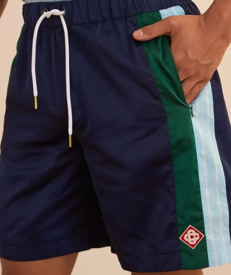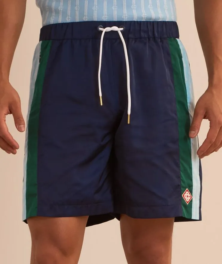 - Cut in a mid-length design from technical fabric, these sleek shorts seamlessly evoke an athletic appeal with contrast side panels and logo details.