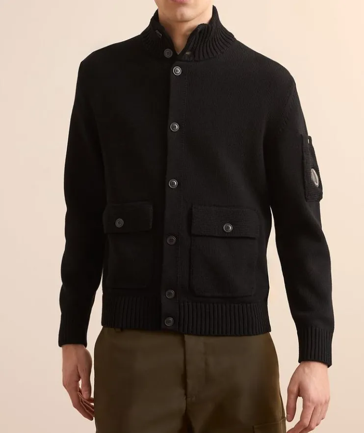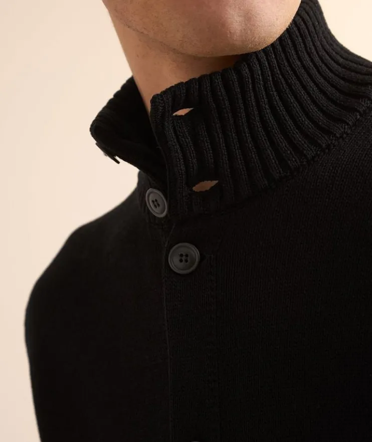 - This buttoned cardigan is crafted from cotton in a heavyweight knit fabrication, with ribbed and pocket details that add a sophisticated and modern touch to this essential layering piece.