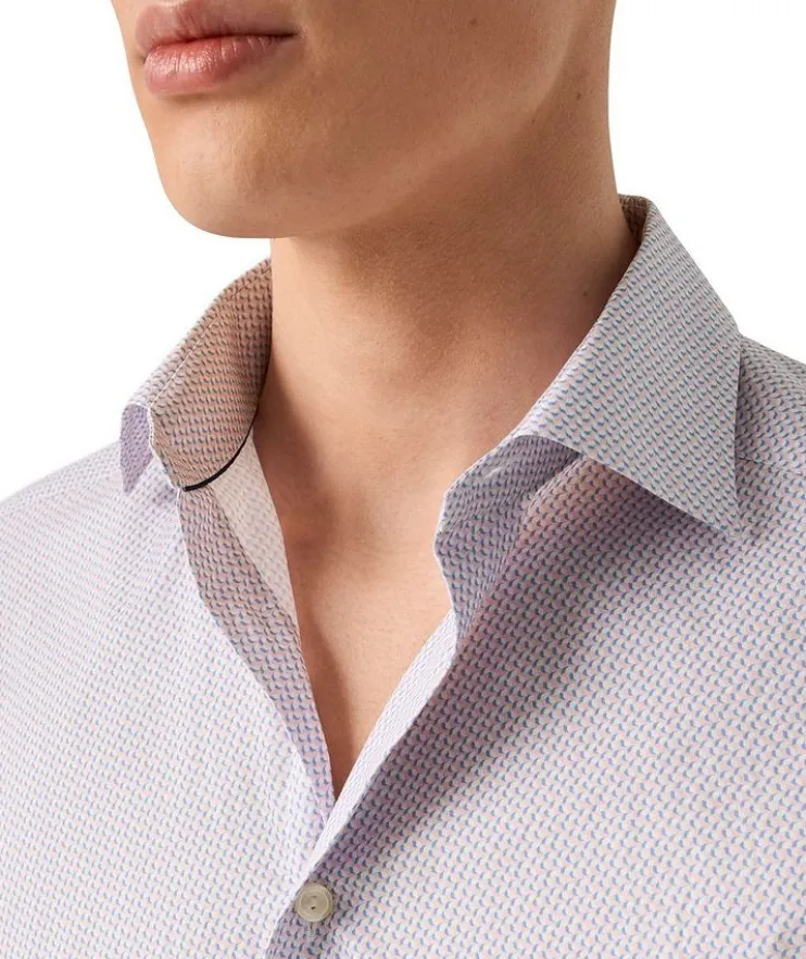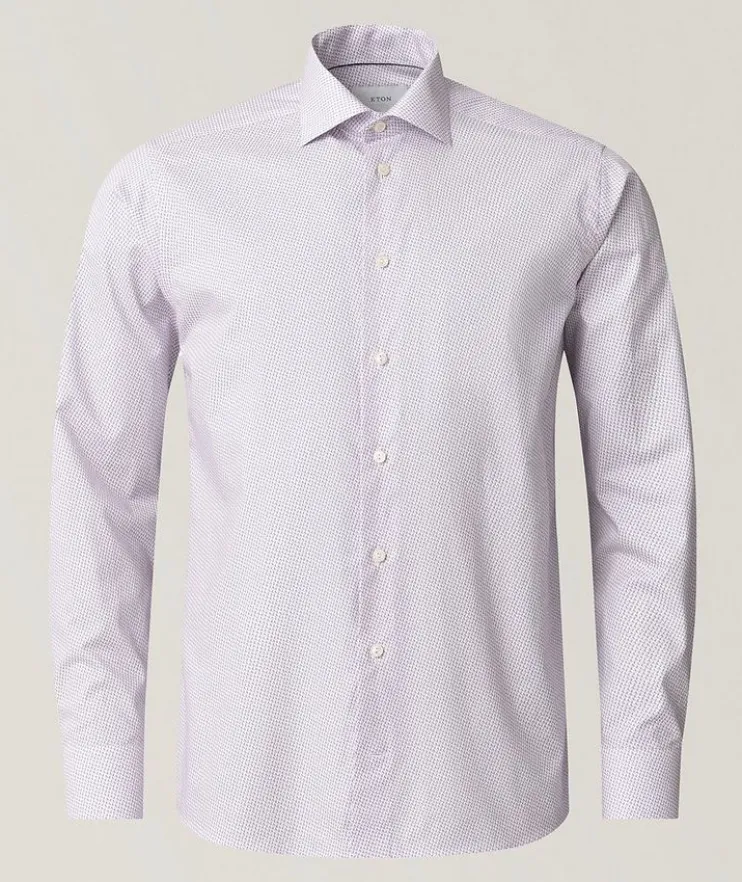 - A classic micro geometric patterned shirt made from Signature Twill. Perfect for adding a subtle pattern to your business outfit, this shirt is printed with a design inspired by Antoni Gaudí’s characteristic mosaic tile patterns found in Barcelona. The 100% cotton Signature Twill fabric combines outstanding wrinkle-free performance with a beautiful diagonal texture and exceptional comfort.