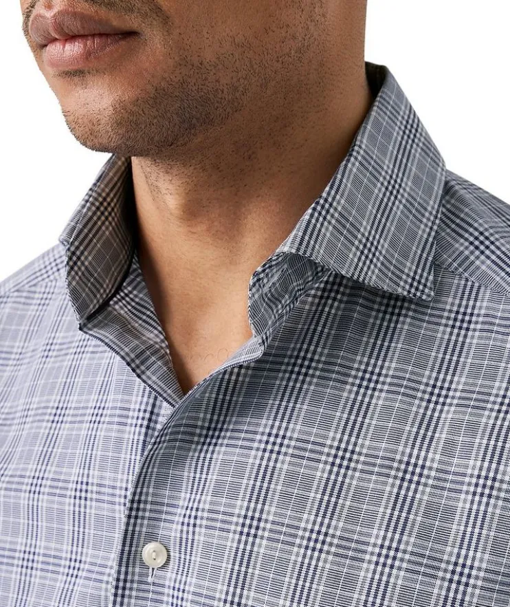 - Suitable for business and smart casual outfits, this classic Prince of Wales check shirt is crafted from a twill fabric with a beautiful luster and elegant glossy touch to keep you looking sharp all day or night.